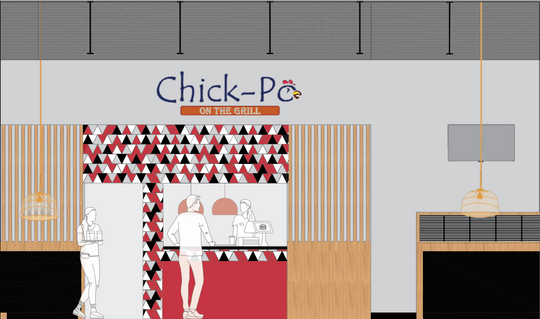 Chick-Po is a vibrant and lively restaurant concept that combines fun and bold design elements to create an inviting atmosphere for guests. The use of colorful tiles and geometric shapes is central to the overall aesthetic, making it a unique dining destination.